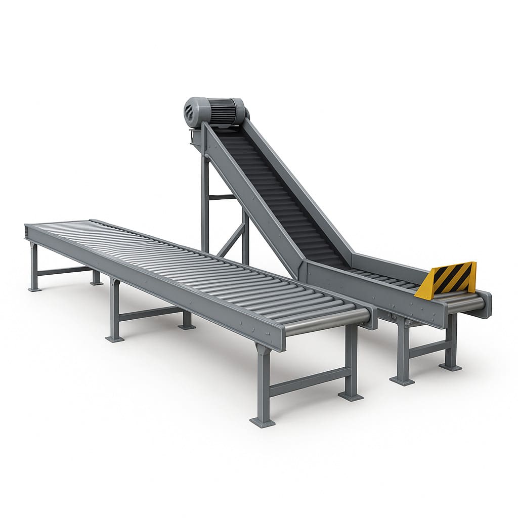 • типовые ленточные, роликовые и цепные линии внутри цехов и складов;